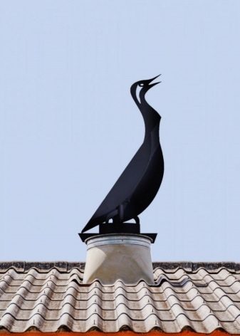 - تصبح العناصر الزخرفية زخرفة حقيقية للسقف. في بعض الأحيان يتم إضافة ريشة طقس جميلة إليهم. بمساعدتها ، يمكنك دائمًا معرفة اتجاه الريح..