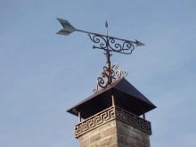 - سمة ريشة الطقس ليست غير شائعة بالنسبة للغطاء الواقي. لا تزين الأشكال الدوامة أعلى نقطة في المنزل فحسب ، بل تتيح لك أيضًا معرفة اتجاه الريح.