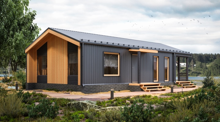 هناك عدد غير قليل من مشاريع المنازل المكونة من طابق واحد على طراز الحظيرة.. بالفعل بمساحة 56 مترًا مربعًا. م من الممكن تمامًا توفير ظروف إقامة ممتازة. في هذا الإصدار ، يبدو أحيانًا أن المظلة والشرفة تدخل داخل المنزل. والنتيجة هي مساحة أصلية ومتصورة عمليًا. يمكن تغيير أبعاد المنزل وتصميمه الداخلي وفقًا لتقديرك الخاص.