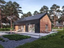 هناك عدد غير قليل من مشاريع المنازل المكونة من طابق واحد على طراز الحظيرة.. بالفعل بمساحة 56 مترًا مربعًا. م من الممكن تمامًا توفير ظروف إقامة ممتازة. في هذا الإصدار ، يبدو أحيانًا أن المظلة والشرفة تدخل داخل المنزل. والنتيجة هي مساحة أصلية ومتصورة عمليًا. يمكن تغيير أبعاد المنزل وتصميمه الداخلي وفقًا لتقديرك الخاص.