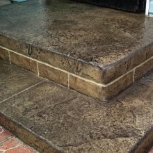 هناك نوع آخر من زخرفة الشرفة – الخرسانة المطبوعة بالجرافيت. الشرفة الخرسانية النهائية مغطاة بعدة أنواع من ذراع التسوية ، والتي لها ظلال مختلفة. يتم إنشاء الإغاثة باستخدام أداة خاصة. باستخدام الاستنسل ، يمكنك عمل رسومات بأي تعقيد.