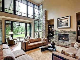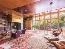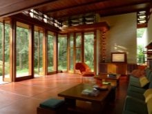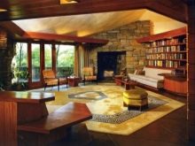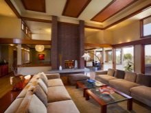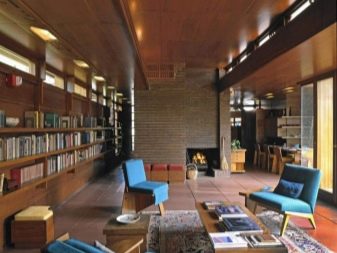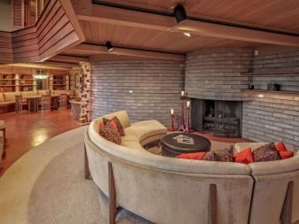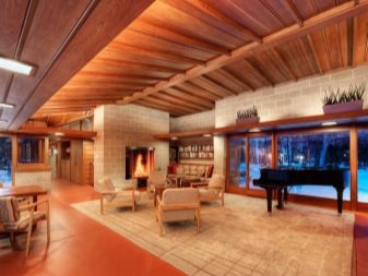 في مثل هذه الغرف ، يتم التفكير في النوافذ البانورامية والمساحة الحجمية والسقوف العالية.. بفضل هذا ، يبدو المبنى مليئًا بالضوء. من المعروف أن فرانك لويد لم يتعرف على الغرف الصغيرة. لذلك ، بدلاً من التقسيم التقليدي لمساحة واحدة بواسطة الجدران ، في منازل البراري ، يتم تمييز الحدود بالإضاءة والأثاث والديكور. يتم توفير قواطع فقط لغرف النوم والحمامات والمراحيض.