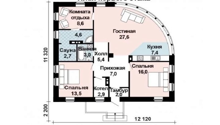 أحد الخيارات الجيدة هو تصميم شرفة بطول 4 أمتار. فور دخولك للمنزل ، يمكنك الذهاب إلى القاعة التي يبلغ ارتفاعها 11 مترًا أو غرفة الغلاية. يجدر التأكيد على ترتيب زوج من غرف النوم..