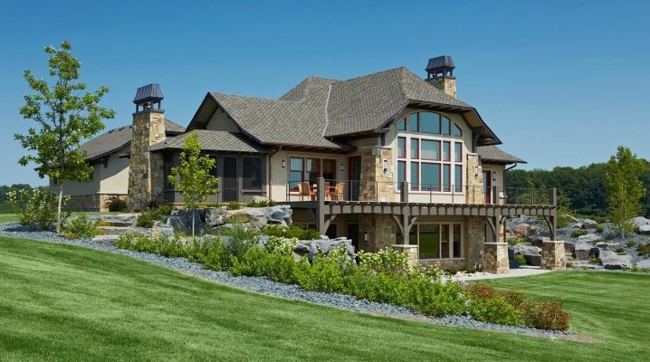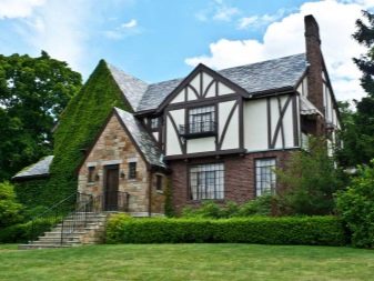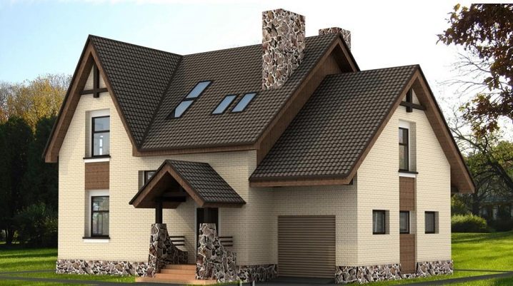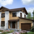 يعتبر التزيين بالطوب والحجر الطبيعي طريقة موثوقة لصنع منزل غير مكلف وغير مثقل بتفاصيل التفرد والموثوقية. تضفي المناور الصغيرة والأنابيب المزخرفة بشكل مميز والشرفة الصغيرة على الهيكل مظهرًا كاملاً. يمكن استخدام المرآب الذي تم بناؤه بشكل متناغم مع النوافذ الصغيرة كمبنى خارجي.