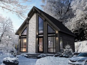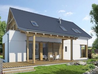 تم إنشاء الهندسة المعمارية غير العادية لمبنى من طابق واحد مع علية بسبب التكوين غير الصحيح للنوافذ. يقاوم سقف الجملون المستخدم في الحل المعماري تراكم الترسيب ويحمي السقف من التسربات. الشرفة الزجاجية – مظهر مضغوط لشرفة صيفية.