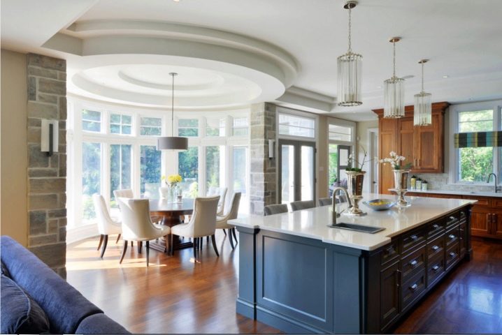 - في المطبخ ، غالبًا ما تستخدم الحافة لإنشاء منطقة لتناول الطعام أو لإعداد طاولة قهوة.. لا يستحق الأمر ازدحام المساحة بشكل مفرط ، حيث ستفقد وظائفها الرئيسية – تحسين الرؤية ، واختراق المزيد من الضوء الطبيعي إلى الداخل.