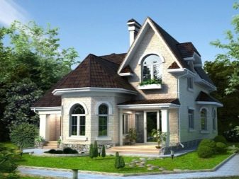 قد يحتوي كل من المنزل الخاص ذي الإطار الخفيف والمنزل الريفي الصغير من الطوب على نافذة كبيرة في المخطط. هذا كلاسيكي يسمح لك بإضفاء الأصالة على حل معماري نموذجي ، والذي يتناسب تمامًا مع أي نمط تقريبًا.