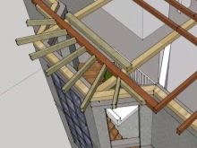 - يتم تشكيل السقف. بالنسبة لنافذة الخليج ، ستحتاج إلى استخدام عوارض ووديان دعم إضافية ، وإضافة كمية مواد التسقيف. في هذه الحالة ، يجب حساب زاوية ميل السقف بشكل فردي حتى يتمكن من تحمل أحمال الرياح. جميع المفاصل مختومة.