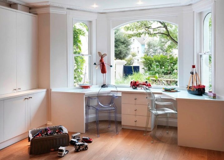 - رتب منطقة للعب أو ركنًا لأطفال المدارس في الحضانة. في هذه الحالة ، يتم وضع سطح مكتب أو خزانة ملابس أو أريكة ناعمة في مساحة النتوء. لتخزين الألعاب ، يمكن استخدام رف أو صندوق أرضي لا يعيق تدفق الضوء من النوافذ.