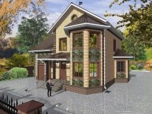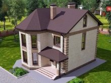 - منزل كبير مصنوع من الخرسانة الخلوية مع نافذة كبيرة مستطيلة وشرفات وتراسات. في الطابق الأول ، يتم إخراج جزء من غرفة المعيشة إلى الحافة ، ويتم ترتيب ضوء ثانٍ فوق الطبقة. يوجد في الطابق العلوي حمامان منفصلان وغرف للأطفال وغرف نوم والطابق السفلي – غرفة استرخاء مع طاولة بلياردو وساونا.