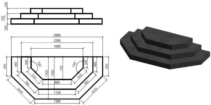 - رواق جميل متعدد الأوجه بثلاث خطوات ، أبعاد 2800 × 1300 مم.