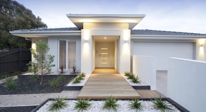 - الطراز الحديث تقنية عالية يحتوي على رسومات بسيطة وخفيفة. غرق الباب الأمامي في المبنى. تقسم تقنية معمارية مماثلة الامتداد إلى منطقة مفتوحة ومغلقة..