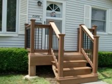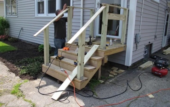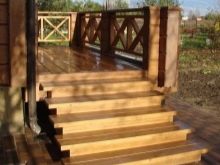 يتم تثبيت السور والدعامات الفضفاضة بزوايا معدنية. يتم استبدال الدرابزينات المكسورة بأخرى كاملة. يتم أيضًا استبدال الخطوات المترهلة باستخدام درع خشبي من أنواع الأشجار القوية ، التي لا يقل سمكها عن 4-5 سم. إذا ظهرت فجوة بين المظلة والمنزل ، يتم سحب الحاجب إلى الحائط وتثبيته بالزوايا.