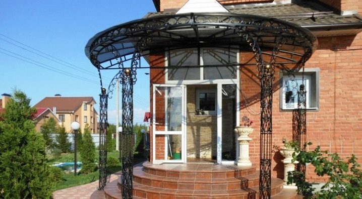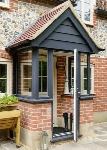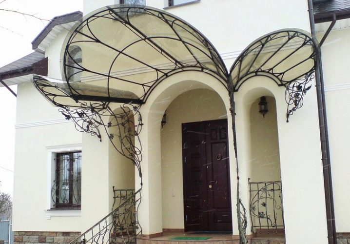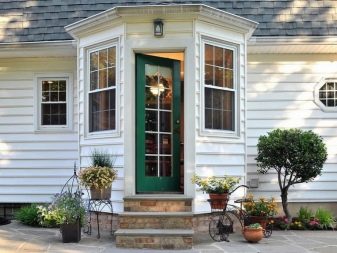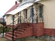المأوى فوق المدخل ضروري.. المظلة تحمي الشخص الذي يدخل المنزل من هطول الأمطار. في الشرفة الفسيحة ، يمكنك الاختباء في ظل الحاجب والاسترخاء على كرسي بذراعين مريح. تم بناء المظلة مع مراعاة المواد التي نصبت منها ، مع مراعاة حمل الغطاء الثلجي في الشتاء. لمنع هطول الأمطار من التجميع ، يحاولون جعل الأقنعة بمنحدر أو منحهم شكلًا انسيابيًا.. تأكد من تثبيت نظام الصرف.