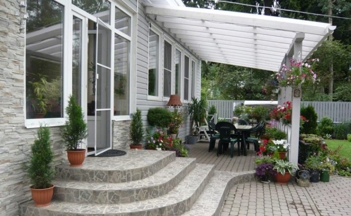 سيكون الأمر أكثر راحة إذا تم تثبيت مظلة فوق المنصة – ستحمي المدخل من سوء الأحوال الجوية ، وستظل المنصة الموجودة أمام الباب دائمًا جافة ونظيفة.