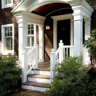 الشرفة الهبوط أمام باب المدخل بالتزامن مع الدرج. في معظم الحالات ، يتم استكمال الهيكل بدرابزين ومظلة. الشرفة تحل مهمتين في وقت واحد – الزخرفية والوظيفية. منزل خاص نادر له باب مدخل في الطابق الأرضي.