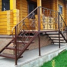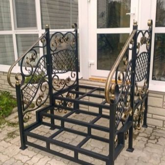 يمكن استخدام المعدن في إصدارات مختلفة في بناء الشرفة. غالبًا ما يكون منتج إطار فولاذي ملحوم ، قوي وموثوق. في بعض الأحيان يتم تغليف الخطوات بألواح معدنية ، ولكن في كثير من الأحيان يتم استخدام مواد أخرى – لوح ، WPC ، بلاط. المنتجات المزورة جميلة بشكل لا يصدق ، وعلى الرغم من وزن المعدن ، فإنها تبدو خفيفة ومتجددة الهواء..