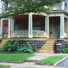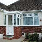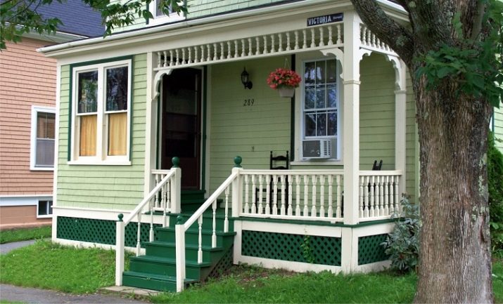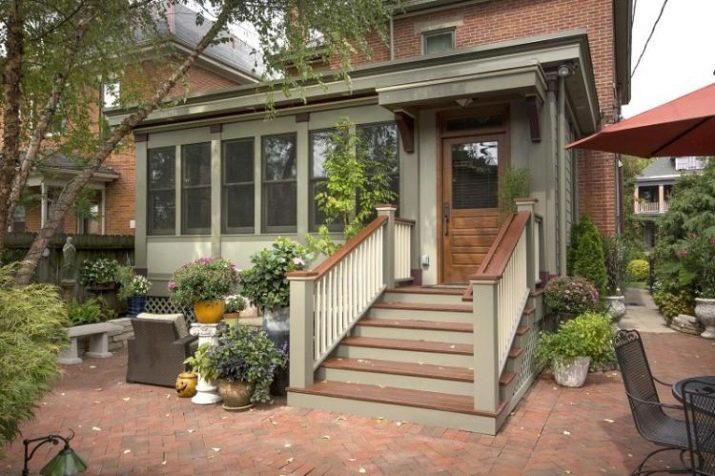 - مع مظلة الامتداد هو الأكثر شيوعًا. لها مهبط ودرج مع درابزين ومظلة فوق الباب الأمامي..