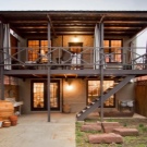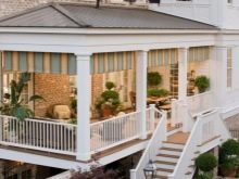 - شرفة ذات درجات مزدوجة تؤدي إلى شرفة كبيرة.