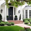 - باب أمامي متماثل مبنى على الطراز الكلاسيكي مع مدخل مركزي.