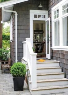 - بناء في الاسلوب بروفانس. سلم بدون درابزين ، والمنصة ، على العكس من ذلك ، تحتوي على سياج وقائي.