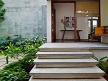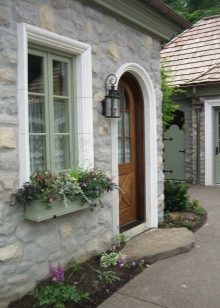 الهيكل الخرساني يبدو جميلاً حتى بدون الكسوة ، ولكن من أجل حماية المواد من التدمير أو لتزيين الشرفة لتزيين المنزل ، فهي مغطاة بالحجر الزخرفي والطوب والبلاط. إذا كانت هناك حاجة ، وفقًا لفكرة المصمم ، إلى هيكل مدخل وحشي ، يتم استخدام الخرسانة المضغوطة.