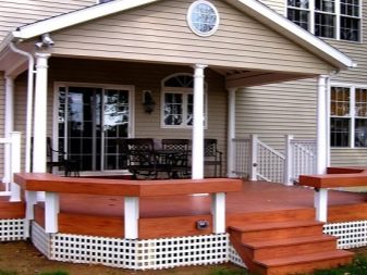 الوظائف الزخرفية للشرفة مهمة أيضًا. يمكن للهيكل غير المدروس أن يفسد مظهر الكوخ. على العكس من ذلك ، فإن الشرفة ، المصممة كواجهة خارجية عامة ، لا تكمل المبنى فحسب ، بل غالبًا ما تصبح عنصرها المميز..