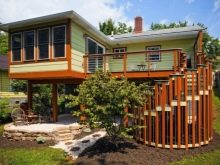 - يمكن رسم الشجرة وتزيينها بالمنحوتات ، وسيكون هذا الامتداد إضافة رائعة لواجهة المبنى. المنتجات الخشبية مناسبة تمامًا للوجهات الريفية والتاريخية والعرقية والمنازل ذات الطراز البيئي.