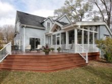 لا يتم دائمًا تغطية المنصة العلوية للتمديد الخشبي بلوحة. غالبًا ما يتم تزيينه بمركب بوليمر خشبي ، لأنه لا يسمح بمرور الماء ولا يتعفن..