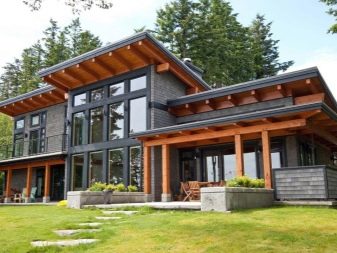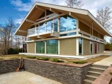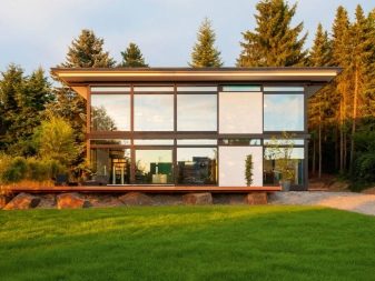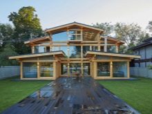 يتم بناء منازل خشبية من الزجاج في أسلوب بساطتها ، والبناء ، والتكنولوجيا الفائقة ، والحداثة. تبدو رائعة وحديثة.
