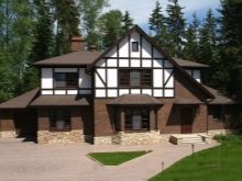 - مجموعة متنوعة من المواد. يمكن بناء كوخ نصف خشبي من أي مواد بناء ، لكل ذوق من العملاء. يتم استخدام أنواع مختلفة من الأشجار لتصنيع الحزم. تشكيلة متنوعة وتشطيب.