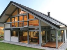 يجب أن يبدأ تصميم المنزل بدراسة الموقع.. إذا كان التصميم يتضمن زجاجًا بانوراميًا ، فيجب أن يطل على أفضل المناظر للمنطقة المحلية ، وإلا فلن يكون هناك مكان في النوافذ الكبيرة. إذا لزم الأمر ، يمكن إضافة مرآب أو شرفة أرضية أو تراس في المستقبل. ولكن يكون أكثر ملاءمة إذا كان الكوخ الذي يحتوي على مرآب يقع في نهاية المنزل سيكون تحت سقف واحد وعلى نفس الأساس. بالمناسبة ، يبدو المنزل الصغير نصف الخشبي سيئًا – للحصول على “رسم” جميل للواجهة ، تحتاج إلى مقياس كبير.
