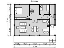 نقترح أن تتعرف على هيكل كوخ حديث بإضاءة ثانية مصنوعة باستخدام تقنية نصف خشبية. تتكون واجهة المبنى بالكامل من زجاج مزدوج. تبلغ المساحة الإجمالية للمنزل المكون من طابقين 146 مترًا مربعًا. م في الطابق الأول من الدهليز يمكنك الوصول إلى غرفة المرجل والممر. من القاعة الكبيرة ، تؤدي الأبواب إلى غرفة المعيشة في المطبخ وغرفة النوم والحمام وإلى الطابق الثاني. هناك غرفتا نوم إضافيتان وحمام وقاعة كبيرة تحت السطح..
