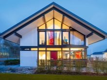 - المنازل التي تمتلئ فيها المساحات بين العوارض بنوافذ ذات زجاج مزدوج لها تكلفة أعلى. لتزيين الواجهات ، يتم استخدام زجاج ثلاثي (6 مم). يصعب كسر هذا الزجاج ، ولكن إذا حدث ذلك ، فلن يتطاير إلى أجزاء ، ولكنه معلق على الفيلم. الزجاج المدرع أغلى ثمنا.