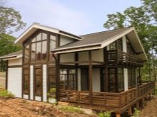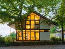 - خفيف ودافئ. غالبًا ما تُبنى المباني بواجهات زجاجية ، وتحتل ثلاثة أرباع سطح جميع الجدران بنوافذ زجاجية مزدوجة. سمحوا بدخول الكثير من الحرارة والضوء ، مما يجعل داخل الكوخ فسيحًا وخفيف الوزن..