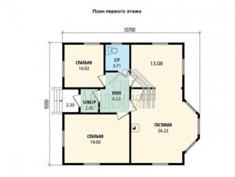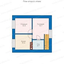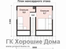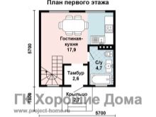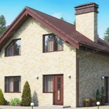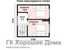 يمكنك أيضًا إلقاء نظرة فاحصة على رسم بديل لمنزل صغير.. تنص على أنه مباشرة من الردهة ، سيدخل جميع الوافدين إلى المطبخ وغرفة الطعام بمساحة 17.9 مترًا مربعًا. م يوجد حمام في الزاوية. يوجد في الطابق العلوي غرفتي نوم وصالة ومصباح ثاني. على الرغم من بساطة مثل هذا الحل ، إلا أنه عملي للغاية وسيناسب حتى أولئك الذين ليس لديهم ميزانيات قوية..