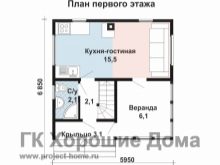 لا يمكن أن تكون رسومات المنازل الصغيرة حلاً أقل جاذبية في بعض الحالات ، خاصةً إذا كان الموقع نفسه صغيرًا. في أحد هذه المخططات ، يتم استكمال مدخل المسكن بأبعاد 6 × 6 م بشرفة. يصل حجم الشرفة الأرضية إلى 6.1 متر مربع. م. مزودة وحمام (بمساحة تزيد قليلا عن 2 متر مربع). يشغل الجزء الرئيسي من الطابق الأول مطبخ بمساحة 15 مترًا ومنطقة معيشة ؛ عند التخطيط للطابق الثاني ، اقتصروا على استخدام غرف النوم وإضاءة ثانية.