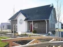 خيار جيد من حيث الأصالة هو منحدر السقف المتغير بشكل حاد.. بشكل عام ، تم تزيين المنزل بألوان رمادية داكنة.. ومع ذلك ، تم تفتيح مجموعة المدخل قدر الإمكان ، مما يضعف المساحة إلى حد ما ويزيل أي تلميح من الكآبة المفرطة. يضيف ملحق الطوب على جانب واحد سحرًا فريدًا. يبدو المبنى جيدًا مقابل الخلفية المحيطة..