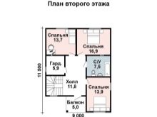 لكن مرة أخرى ، لا يسعد الجميع بوجود علية غير سكنية. لذلك ، من المناسب تمامًا التفكير في خيار التصميم لمنزل ريفي نموذجي. في هذا المخطط ، يُعرض على المستأجرين استخدام 3 غرف نوم وغرفتي نوم.. ستصنع الجدران من كتل الخرسانة الخلوية أو الخرسانة الرغوية حسب اختيار المطورين. لا توجد فواصل بين غرفة الطعام التي يبلغ ارتفاعها 8 أمتار وغرفة المعيشة التي يبلغ ارتفاعها 27 مترًا..