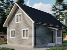في البيوت الصيفية ، يمكن أيضًا أن تكون المنازل المكونة من طابقين ذات الأسقف الجملونية بمثابة “حشوة” جيدة. يتضمن أحد هذه المشاريع بناء تقنية الإطار على أساس دعامة بقاعدة 20 سم. من بين 4 غرف ، سيتم استخدام 3 غرف نوم. تبلغ مساحة غرفة المعيشة حوالي 17 مترًا مربعًا. م – لم يتم توفير التراس ، وتبلغ مساحة المطبخ 8.6 متر مربع. م.