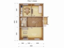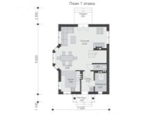 سيتم تجهيز غرفة مرجل بمساحة 8.8 م 2 في الطابق الأرضي. تبلغ مساحة المطبخ حوالي 10 أمتار مربعة. م قاعة المدخل مجاورة لمنطقة الضوء الثانية. حتى أنه كان هناك مكان لحجرة المؤن ومنطقة لتبديل الملابس. الطابق العلوي: