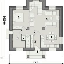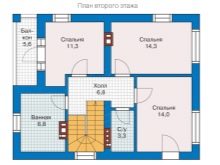 لكن مرة أخرى ، لا يسعد الجميع بوجود علية غير سكنية. لذلك ، من المناسب تمامًا التفكير في خيار التصميم لمنزل ريفي نموذجي. في هذا المخطط ، يُعرض على المستأجرين استخدام 3 غرف نوم وغرفتي نوم.. ستصنع الجدران من كتل الخرسانة الخلوية أو الخرسانة الرغوية حسب اختيار المطورين. لا توجد فواصل بين غرفة الطعام التي يبلغ ارتفاعها 8 أمتار وغرفة المعيشة التي يبلغ ارتفاعها 27 مترًا..