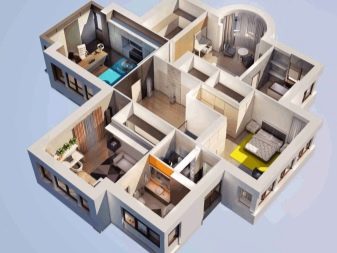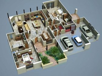 تصميم السكن مجاني ، لذا يمكن أن يختلف عدد الغرف حتى 10 ، لكن في بعض الأحيان يتجاوز عددها العدد المحدد. يحتوي المبنى على مخرجين منفصلين مصنوعين من الزجاج: إلى الفناء والشرفة.. النوافذ كبيرة ، أبعادها من الأرض إلى السقف. مثل هذه الحلول تعطي مساحة وتجعل المنزل بصريًا أوسع..