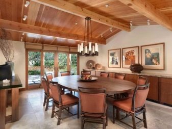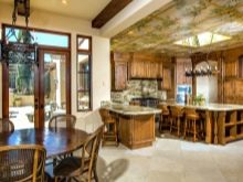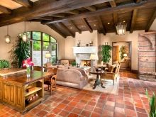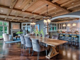 يفضلون عدم لمس الأسقف في هذه المنازل ، وترك العوارض الخشبية المكشوفة لإعطاء النكهة المرغوبة.. بالنسبة للإضاءة ، اختاروا الثريات ذات الشموع المقلدة والمصابيح الفولاذية – كل هذا مناسب جدًا.