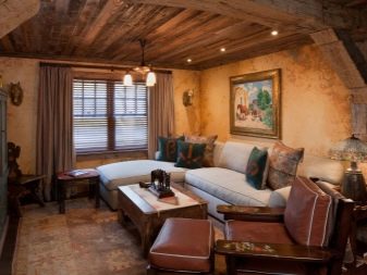 لا يعني أسلوب المزرعة المظهر الخارجي للمبنى فحسب ، بل أيضًا المظهر الداخلي. من الضروري أن تتحلى بروح الوقت الذي ولد فيه الأسلوب. في التصميم الداخلي تحتاج إلى الالتزام ببعض الميزات.. يجب أن يكون نظام الألوان بسيطًا ، وتعطى الأفضلية للأزرق والبيج والبني والأصفر. من الأفضل استخدام الموارد الطبيعية من المواد بدلاً من البلاستيك والزجاج..
