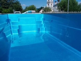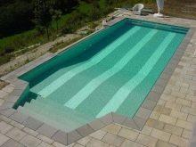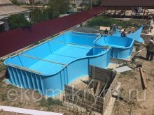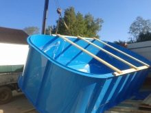 - مركب. حوض السباحة مصنوع من مادة الألياف الزجاجية المشبعة براتنجات البوليستر. منتج البناء خفيف الوزن وقوي ودائم ولا يخاف من تقلبات الطقس.