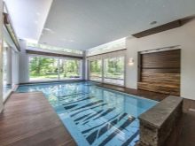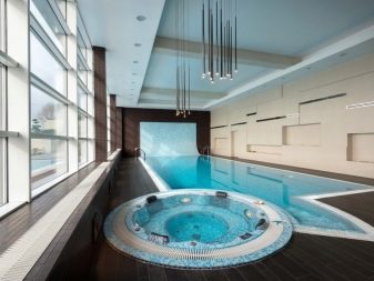يمكن وضع المسبح في كوخ ريفي تحت نفس السقف معه ، أو إرفاقه بالمنزل أو وضعه داخل الموقع. قد يشمل تخطيط المباني الحديثة ، التي يقدر أصحابها الراحة ، بالإضافة إلى المسبح ، تراسًا مجهزًا ، وصالة رياضية ، وحديقة شتوية ، وغرفة بلياردو ، وساونا.. لا يتم دائمًا إنشاء الخطوط في الطابق السفلي أو في الطابق السفلي – يمكن أن تكون في العلية وحتى على السطح.