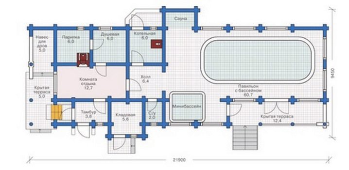 تشغل الأكواخ المكونة من طابق واحد مع مسبح داخلي مساحة كبيرة ومبنية على قطع كبيرة من الأرض ، لأن جميع غرف المعيشة والغرف الفنية تقع في نفس المستوى ، وهذا يتطلب مساحة كبيرة. لذلك ، غالبًا ما يتم تجهيز حمامات السباحة في المنازل ذات العلية ، والتي يمكن استخدامها كغرف نوم ، وكذلك في مجمعات الحمامات المكونة من طابق واحد أو بيوت الضيافة.. نحن نقدم لك التعرف على العديد من مشاريع الأكواخ مع أحواض المياه الساخنة.