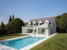 مشروع منزل من طابق واحد مع علية يقسم المبنى بشكل مشروط إلى قسمين. إحداها بها جراج لسيارتين وغرفة مرجل وغرفة تخزين وساونا مع مسبح. الجزء الثاني يحتوي على غرفة معيشة وغرفة نوم ومطبخ مع غرفة طعام.. يكتمل المبنى بشرفة كبيرة تقع على ثلاثة جوانب من المبنى.