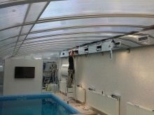 يجب إيلاء اهتمام خاص لنظام التهوية. سيؤدي ترتيب الميزانية للتهوية ، الذي لا يتجاوز 300 ألف ، إلى حقيقة أنه لا يمكن استخدام المسبح إلا في الموسم الدافئ. مع سوء التهوية ، لا يمكن تجنب التكثيف الدائم على جدران الغرفة.